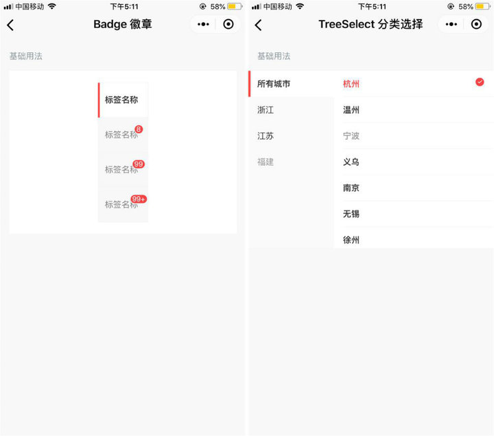 除了以上可用于購物類小程序的組件,Vant 組件庫當(dāng)然還有那些比較通用基本元素、彈出層、Transition 動畫等。值得一提的是,Vant 還支持自定義 Actionsheet,在「反饋組件」的「上拉菜單」中,有三種不同的自定義 Actionsheet。