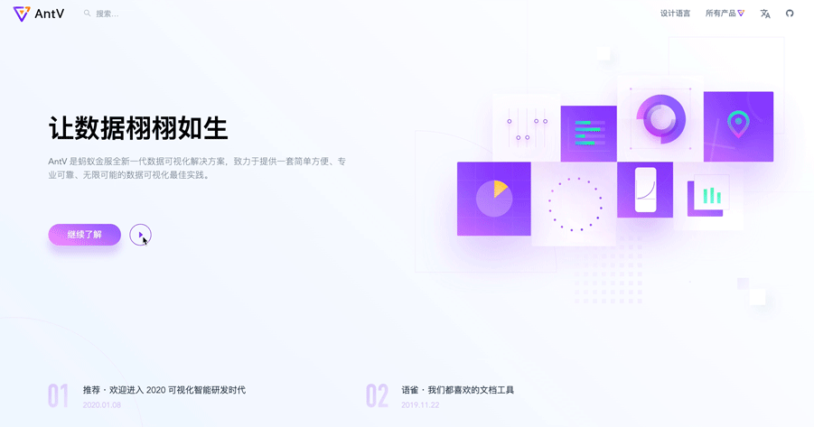 微交互已經(jīng)存在了很多年,尤其是在可視化的應(yīng)用上。例如,在AntV鼠標(biāo)移入播放按鈕時(shí),會(huì)展開(kāi)全部按鈕。微交互和微動(dòng)畫(huà)的應(yīng)用是用來(lái)輔助用戶(hù)更快速了解和學(xué)習(xí)網(wǎng)站的功能。可以它們當(dāng)做是一種路標(biāo),反饋和確保信任的方式,讓用戶(hù)成為網(wǎng)站的一部分。